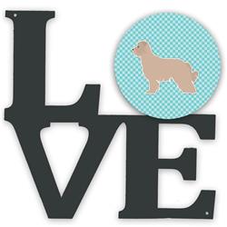 Carolines Treasures BB3718WALV 11.5 x 11.75 in. Pyrenean Shepherd Checkerboard Blue Metal Artwork Love Wall Decor