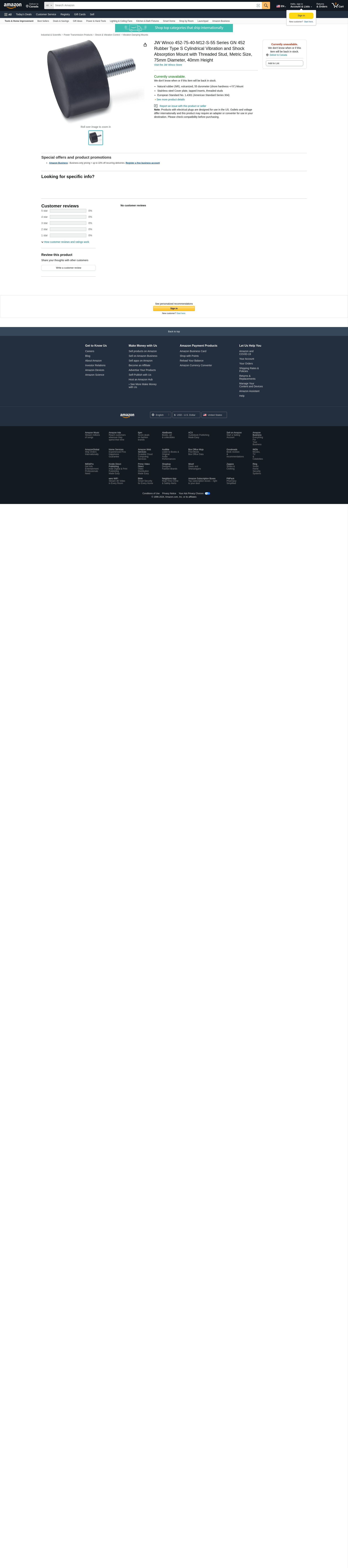 Vibration Mount, Threaded Stud | 452-75-40-M12-S-55