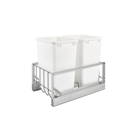 Rev-A-Shelf Double Pull Out Waste Container Storage for Kitchen Base Cabinets, 35 Qt Trash Cans with Soft-Close Slides, Silver & White, 5349-15DM18-2