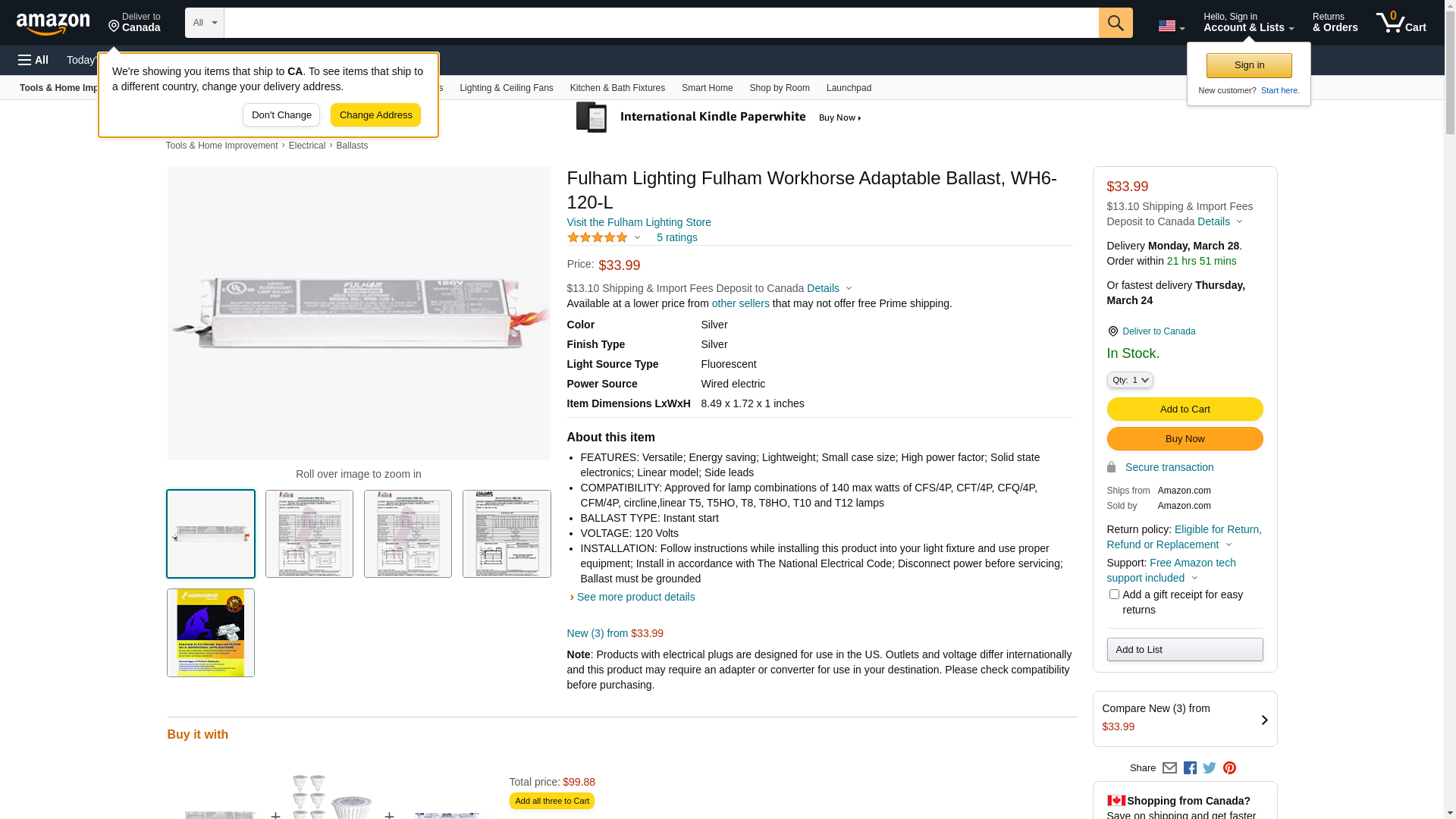 ![]() ballastshop.com | BS-WH6-120-L | 1 | In Stock - unless otherwise indicated by stock status | 1 | 1 @ $34.95 |