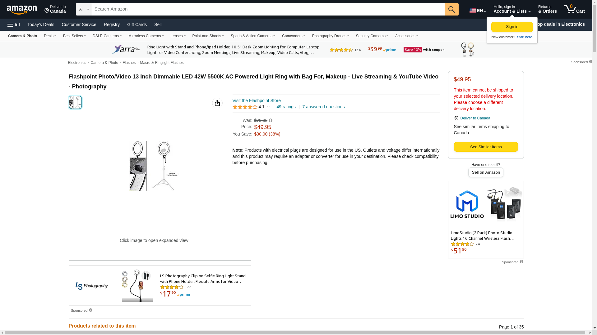 | Feature | Flashpoint 13" AC Powered 42w 5500K Dimmable LED Light Ring - Protective Travel Case - Flashpoint 1-Year USA Warranty |