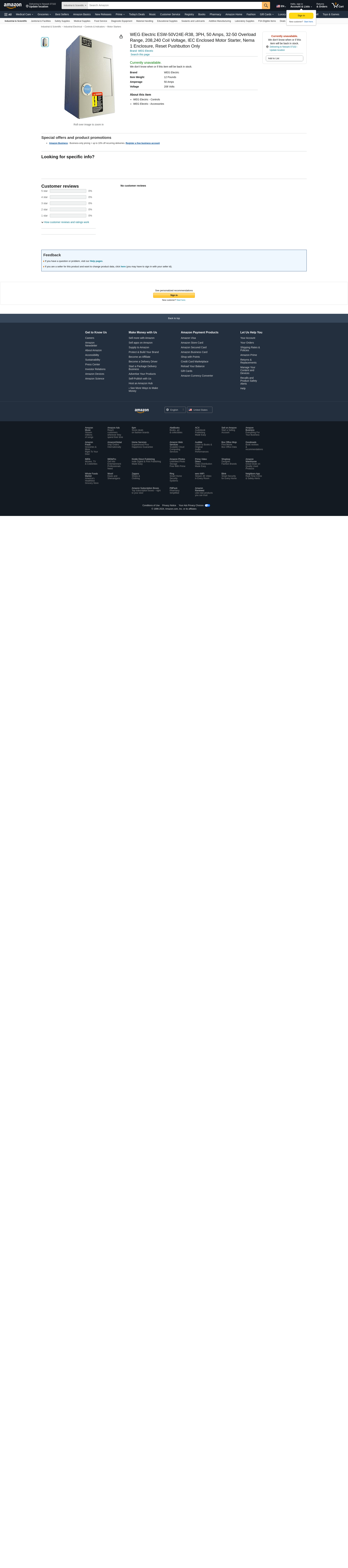WEG Electric ESW-50V24E-R38, 3PH, 50 Amps, 32-50 Overload Range, 208,240 Coil Voltage, IEC Enclosed Motor Starter, Nema 1 Enclosure, Reset Pushbutton Only