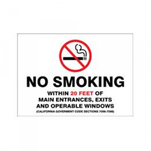 NO SMOKING WITHIN 20 FEET OF MAIN ENTRANCES, EXITS AND OPERABLE WINDOWS (CALIFORNIA GOVERNMENT CODE SECTIONS 7596 – 7598) W/GRAPHIC (2 Pack)