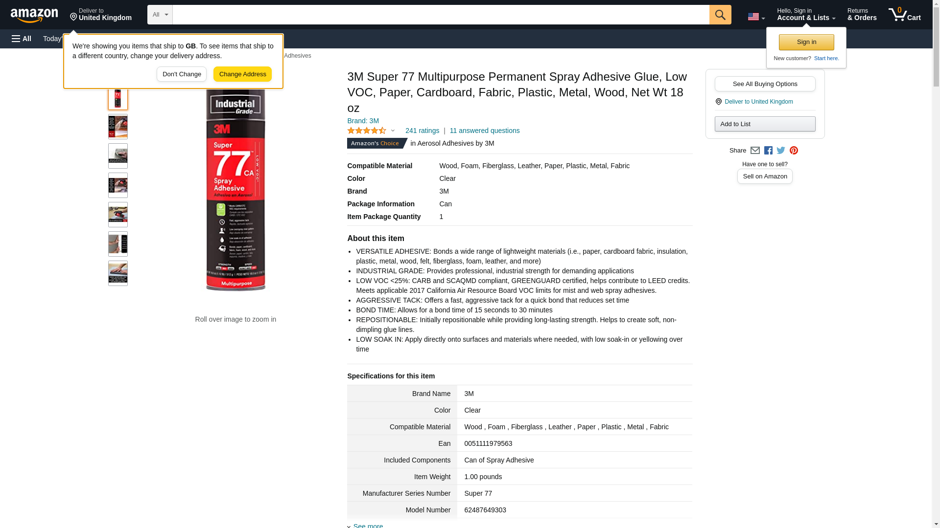 3M Super 77 Spray Adhesive Low VOC< 25% Clear, 24 fl oz can net wt 18.0 oz (Pack of 1)