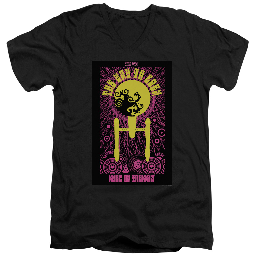 Trevco CBS2012B-AV-4 Star Trek & Tos Episode 75 Short Sleeve Cotton Adult Slim Fit V-Neck 30-1 T-Shirt, Black - Extr