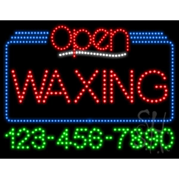 Everything Neon L100-6484 24 x 31 x 1 in. Waxing Open with Phone Number Animated LED Sign - Red, White & Blue