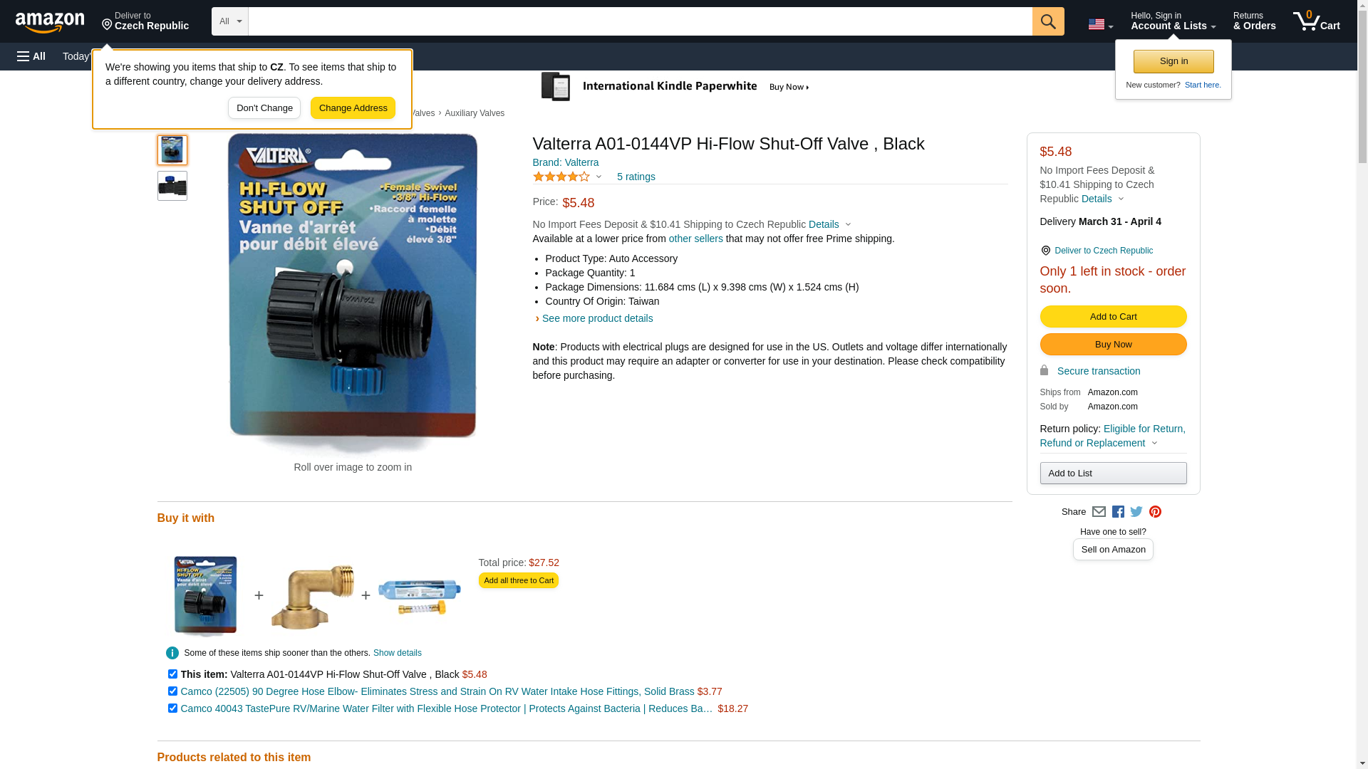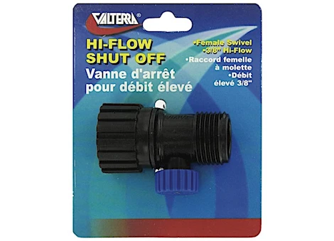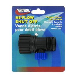 - Fresh Water Hose Connector; Hi Flow; Fits Standard Garden Hose Female Coupling; Plastic; With Shut Off Valve; With Retail Package