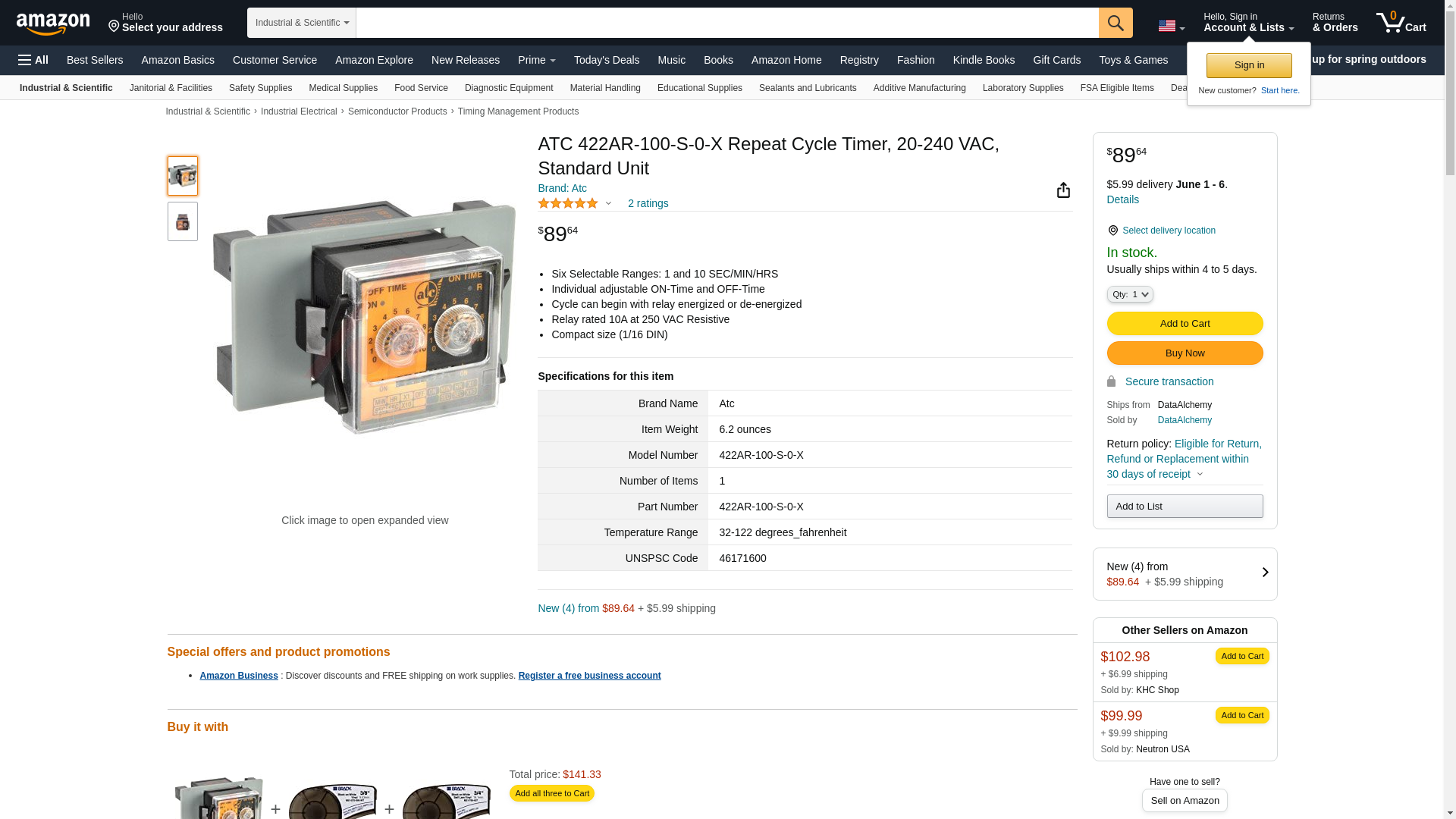 ATC 422AR-100-S-0-X Repeat Cycle Timer, 20-240 VAC, Standard Unit