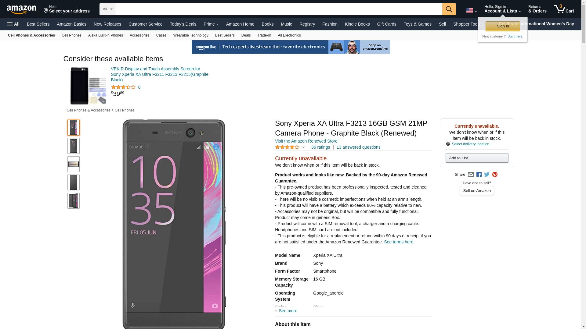 Sony Xperia XA Ultra F3213 16GB GSM 21MP Camera Phone - Graphite Black (Renewed)