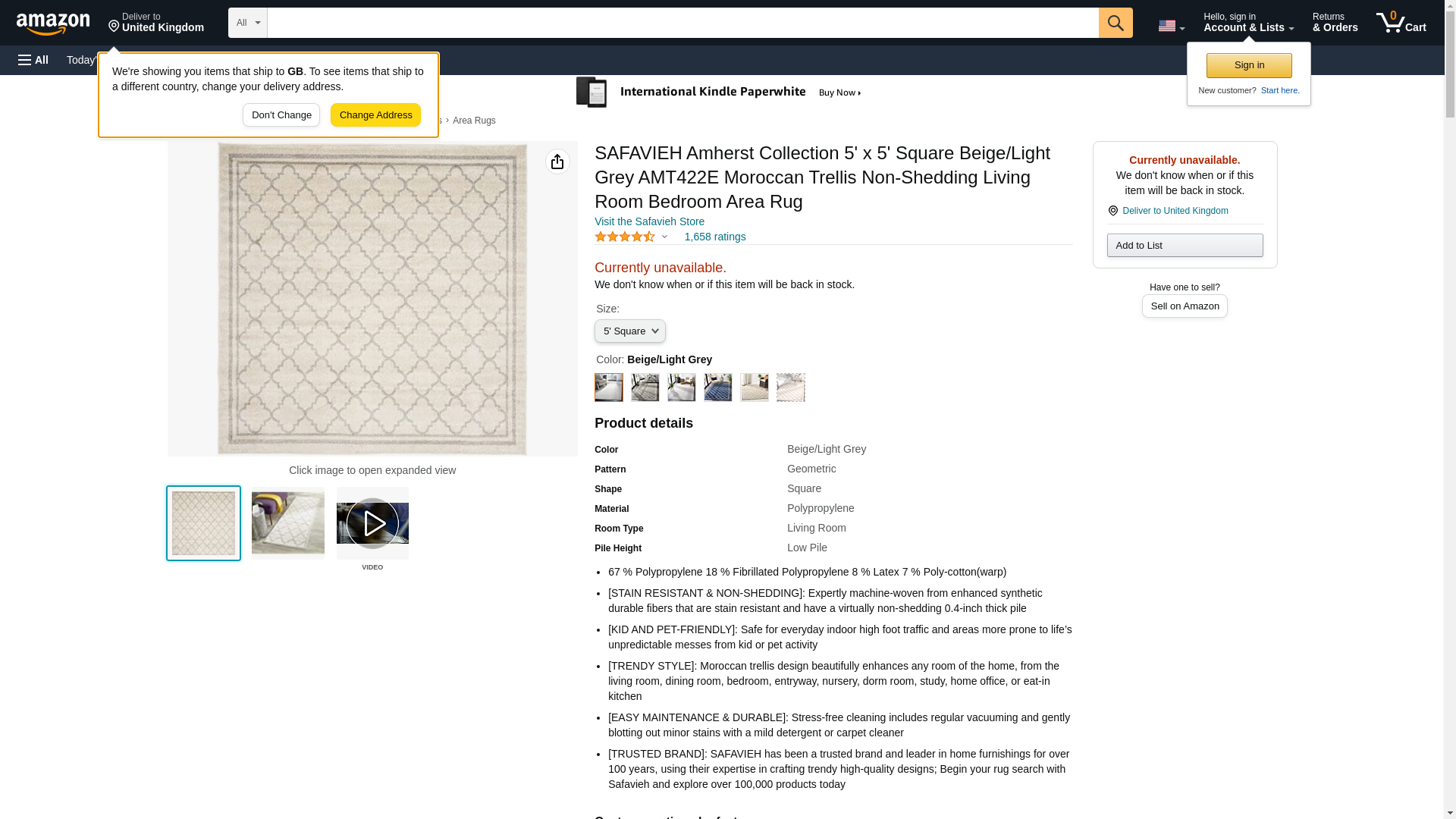 Safavieh AMT422E-5SQ Amherst Power Loomed Square Rug, Beige - Light Grey, 5 x 5 ft.