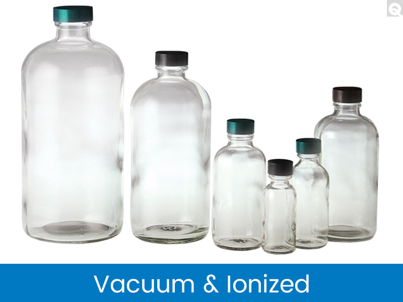 Qorpak Vacuum / Ionized Clear Glass Boston Round Bottles with Caps - V ? Grayline Medical