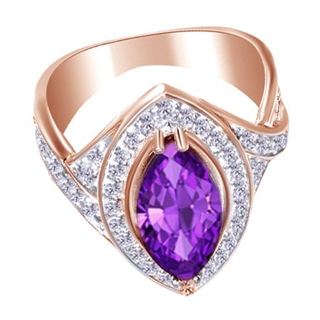 <ul> <li>Metal Type : 14k Rose Gold OVer Sterling Silver GUARANTEED, Authenticated with a 925 Stamp</li> <li>Gem Type :- Simulated Amethyst (Lab Created); Simulated Topaz (Lab Created)</li> <li>Stone Shape :- Marquise Shape & Round Shape</li> <li>Stone Setting type :- prongs</li> <li>Stone Clarity :- VVS1-VVS2 & VVS1-VVS2, Stone Color :- Violet; White</li> </ul>