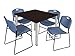 Kee 48" Square Breakroom Table- Mocha Walnut/ Chrome & 4 Zeng Stack Chairs- Blue
