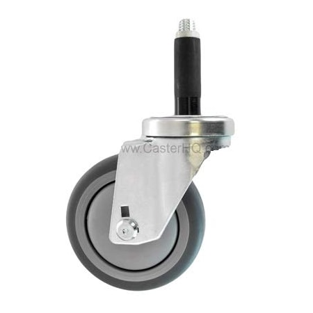 3" Expanding Stem Caster with 7/8" Expandable Adapter Wheel Material: Gray Thermo Plastic Rubber Wheel Caster HQ's 3" Expandable Stem Caster with a 7/8" Expanding Stem is our premium food service & institutional swivel caster Series LD; is made specifically for customers wanting the advantages of quality over budget; this series is made from heavy gauge cold rolled steel designed and formed for maximum durability, featuring hardened double ball raceways for added strength and extra long service life. The design also features a metal dust cap over the upper raceway of the swivel casters. Popular industries using these casters include: Food service & food processing, bakeries, institutions, hospitals, schools, laboratories, retail environments and are also used for material handling carts & trucks, and various other light medium duty applications requiring a higher standard in quality and functionality. NSF LISTED & APPROVED RoHs Compliant ISO 9001 Certified Our Expanding Rubber Adapter Casters fit both Square Tubing and Round Tubing. Each Expandable Adapter is pre-installed over the top of a 1/2"-13 x 2-1/2" Threaded Stem. Expanding Stem casters include the following parts: Base Washer Nylon Spacer Rubber Adapter Nural Nut Features Hardened double ball raceways for added strength and extra long service life. Designed for maximum durability. Features numerous popular Rubber Expandable Adapters Zinc plated finish is attractive & corrosion resistant. Large selection of wheels & options. 3/8” Axle & nut. Good availability = quick deliveries. NSF Listed.