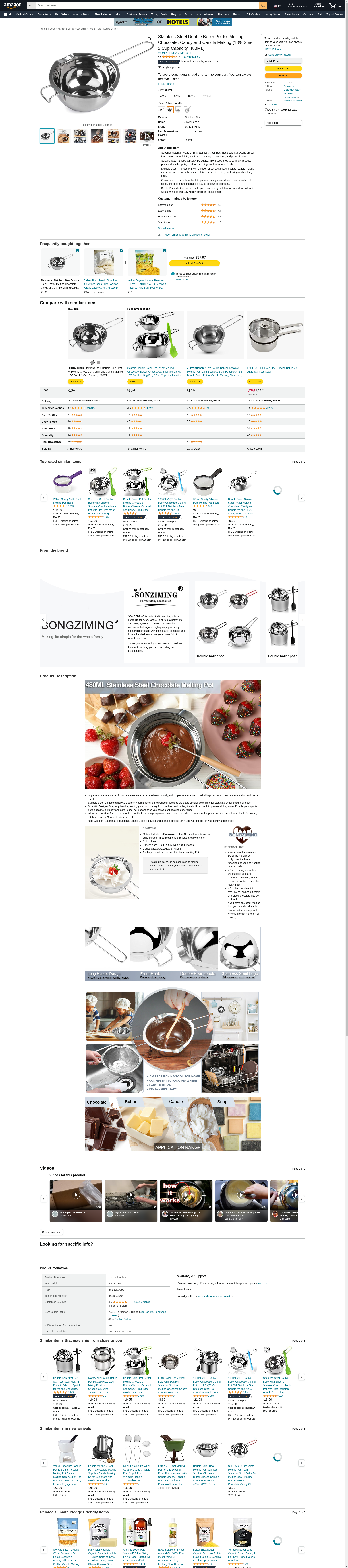 <b>SPECIFICATION:</b><br> Material: Made of 18/8 stainless steel.<br> Product size: 10.2(L) x 5.6(W) x 2.1(H) Inches<br> Capacity: 480ML<br> Weight: 164g / 5.3 ounces <br> Package includes:1 x Melting chocolate Pot<br> <b>Melting Skill Tips</b><br> √ Water reach approximate 1/3 of the melting pot body,do not full water reaching pot edge so heating more quickly.<br> √ Stop heating when there are bubbles appear in bottom of the water,do not boil up the water to heat the melting pot.<br> √ Cut the chocolate into small piece, do not put whole one-piece chocolate into pot and melt. If you have any other melting tips, you can also share in review and let more people know and enjoy more fun of cooking.<br> <b>Features:</b><br> ①Safe Material-This is a practical chocolate melting pot, with the food grade stainless, safe, healthy and easy to clean.<br> ②Updated melting chocolate pot- Flat bottom, long handle design, Front hook to prevent sliding away. With 480ML capacity.<br> ③Two diversion groove design- easy to use for chocolate, butter, candy and etc.it is a good baking tool.<br> ④Great baking tool- It’s can be good used as melting butter, cheese, caramel, candy,and chocolate, heat honey, milk, candle making etc.<br>