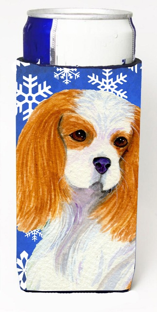 Caroline's Treasures SS4665MUK Cavalier Spaniel Winter Snowflakes Holiday Ultra Hugger for slim cans Can Cooler Sleeve Hugger Machine Washable Drink Sleeve Hugger Collapsible Insulator Beverage Insula