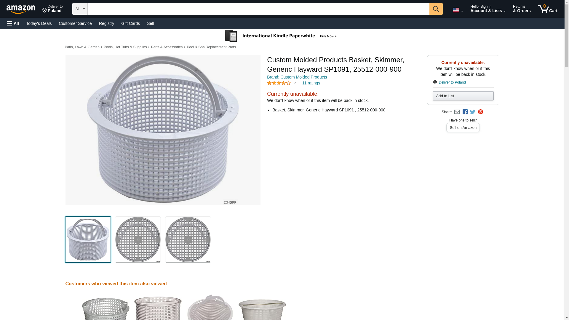 Custom Molded Products Basket, Skimmer, Generic Hayward SP1091, 25512-000-900