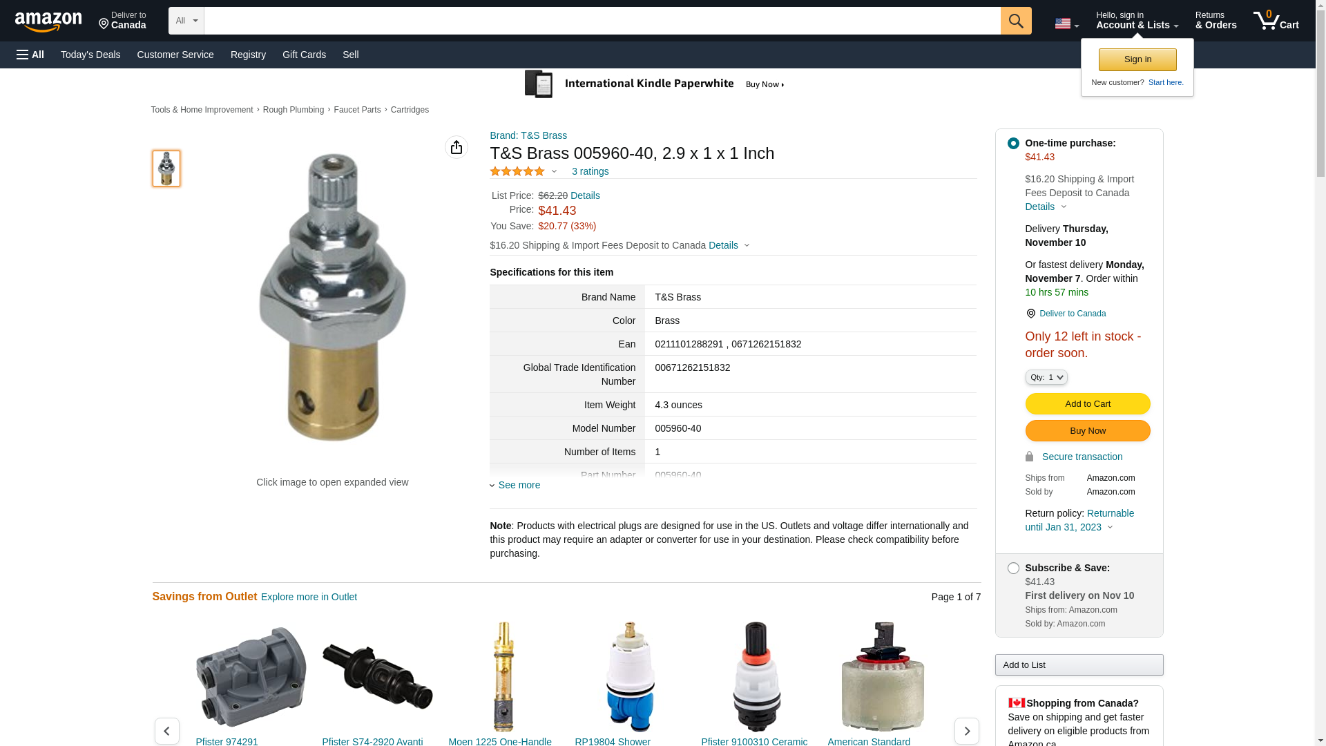 T&S Brass 005960-40, 2.9 x 1 x 1 Inch