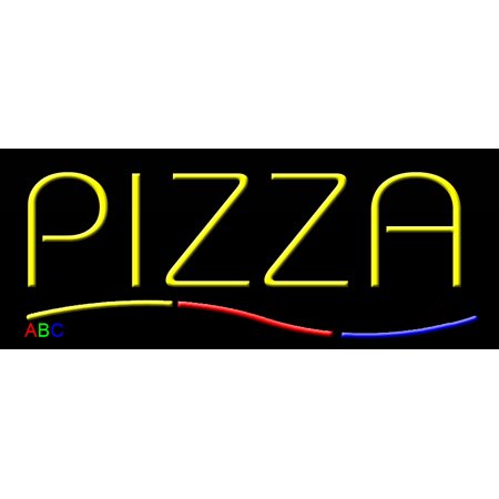 <b>12"x24" ABC LED Signs Pizza LED Sign w/Flashing Controller - Standard Outdoor/Indoor</b>: <ul> <li>Customizable</li> <li>12 month limited warranty on parts and labor</li> <li>Uses attractive quality translucent black backing, not ABS plastic</li> <li>Very light weight</li> <li>Highly efficient. Uses up 90% less energy than glass neon</li> <li>Flashing & Animated LED Display</li> <li>Excellent visibility. (including when in direct sunlight)</li> <li>Includes hanging chain</li> <li>Included a 110V AC Adapter</li> <li>Animation/Flashing turned on/off is very simple, via a switch</li> </ul>