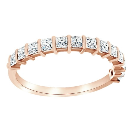 <ul> <li>Metal: Rose Gold With 14K Metal Stamp</li> <li>Stone: White diamond</li> <li>Stone Color: White, Stone Clarity: I2</li> <li>Stone Shape: Princess Cut</li> <li>Stone Setting Type: Bar</li> </ul>