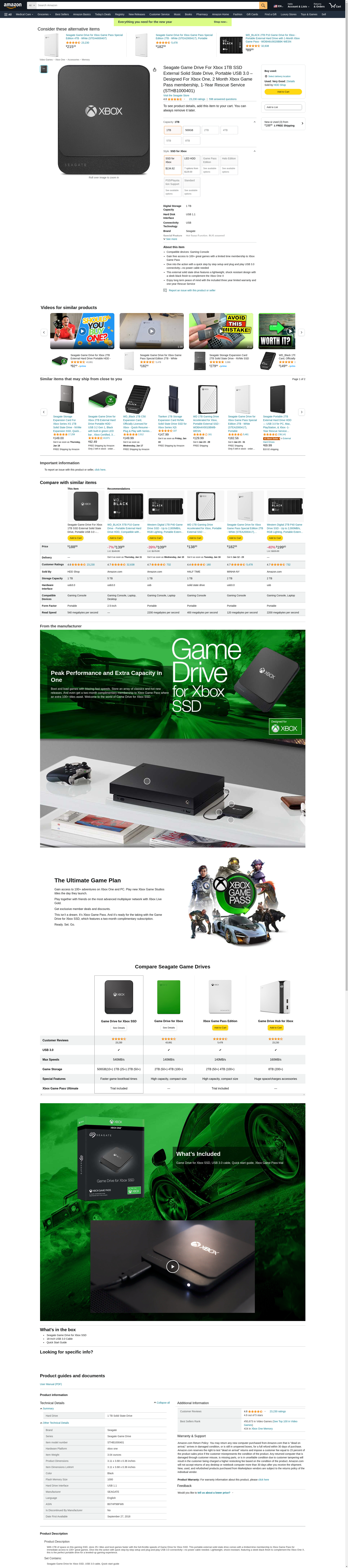 Seagate Game Drive For Xbox 1TB SSD External Solid State Drive, Portable USB 3.0 – Designed For Xbox One, 2 Month Xbox Game Pass membership, 1-Year Rescue Service (STHB1000401)