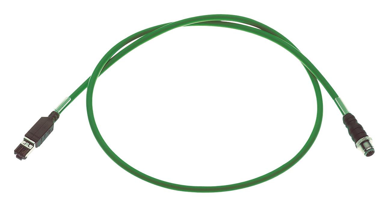 Harting Cable Assy, Rj45 Jack-M12 Plug, 1M, Grn - 09457005022