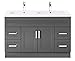 - Double Vanity: Add a modern touch to your bathroom decor; Features stylish chrome door and drawer handles, top drilled for single hole faucet, and two rectangular ceramic basins; Wood construction; Choose from available finishes