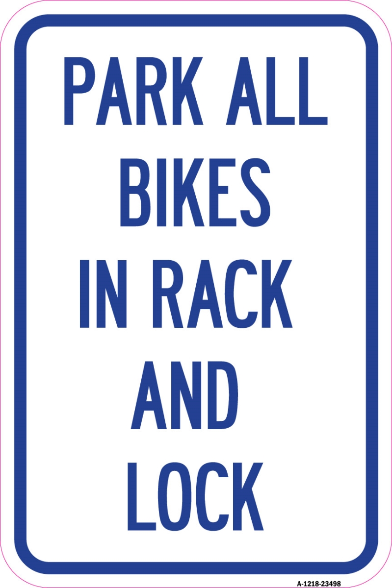 Park All Bikes in Rack and Lock Sign Heavy-Gauge Aluminum Sign