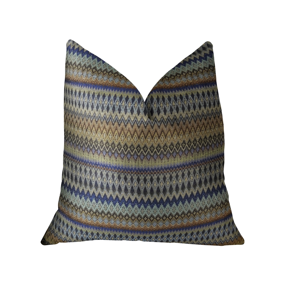Plutus PBRAZ302-2020-DP Zipline Navy Blue & Taupe Handmade Luxury Pillow, 20 x 20 in.