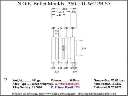 Bullet Mold 2 Cavity Aluminum .360 caliber Plain Base 101 Grains bullet with a Wadcutter profile type. The classic lightweigh - 11228662