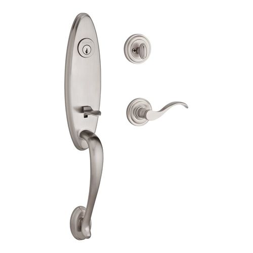Chesapeake Single Cylinder Handleset with Traditional Round Rose and Curve Lever on Interior Single Cylinder: Baldwin's single cylinder handleset has a keyed cylinder on the exterior and a thumbturn on the interior. Unlocking and locking the deadbolt is done by either a key on the exterior or via the thumbturn on the interior. This handleset includes both the interior and the exterior for a complete entrance solution. Features: Solid forged brass construction built to last a lifetime. Baldwin 5-pin C-Keyway standard. SmartKey Re-Key Technology optional (Contact Customer Service is SmartKey Cylinder is desired). Versatility and Easy Installation: Adjustable Latch for both 2-3/8" and 2-3/4" backset Round Corner, Square Corner and Drive-In Latch Plates Includes both Round Corner and Square Corner Strike Plates Guide Post for Easy Installation Accommodates door thickness 1-3/8" to 2". 2-1/8" cross bore and 1" edge bore for latch. Tested to exceed ANSI/BHMA Grade 2 security. Left Handing Configuration Solid brass deadbolt latch with hardened steel roll pin for additional strength and security. Shown with Curve Lever and Traditional Round Rose. See Baldwin SC.CHE to completely customize this handleset with more finish and interior options. Limited Lifetime Mechanical Warranty and Limited 25 Year Finish Warranty. Baldwin Reserve combines Baldwin's legacy of quality and craftsmanship with advanced technology to deliver a personalized blend of styles that are more accessible to builders, designers and homeowners. Baldwin Reserve offers a range of Baldwin's most traditional, contemporary and rustic styles as well as new authentic Baldwin designs inspired by today's design trends. Mix and match Baldwin Reserve. Personalize your home with a custom configuration that combines Baldwin's legacy of craftsmanship with a custom look for every architectural style. Additional Information Baldwin Hardware SC.CHExCUR.L.TRR Specification B