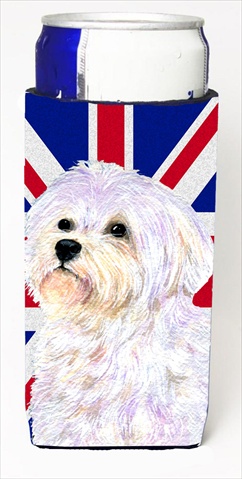 Carolines Treasures SS4923MUK Maltese With English Union Jack British Flag Michelob Ultra bottle sleeves For Slim Cans -