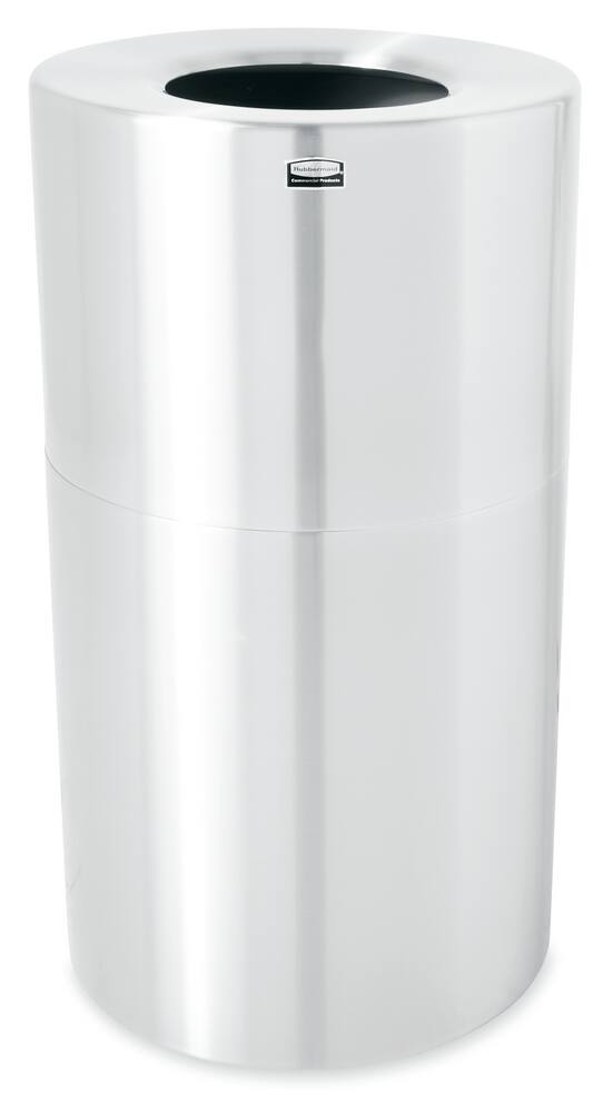 Rubbermaid Commercial Atrium Open Top Decorative Indoor Waste Container with Plastic Liner, Satin Aluminum, 21-Gallon Capacity | Grand & Toy