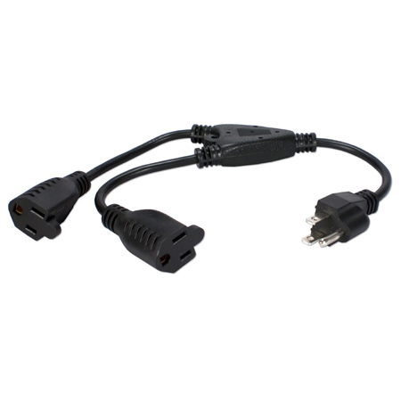 Attach two power adaptors per outlet. It can be used with any power strip or wall socket without blocking other outlets. Provides 16 Inches of space to accommodate over-size adaptors. Ideal for UPS, rack mount outlets and for travelling situations. Includes 2pc per pack. (REV3; Connector: AC NEMA 5-15P Male to 2 NEMA 5-15R Female; Length: 16 Inches; Color: Black; Power Wire: 18AWG/3C; Cable Rating: 10A/125v)</p>