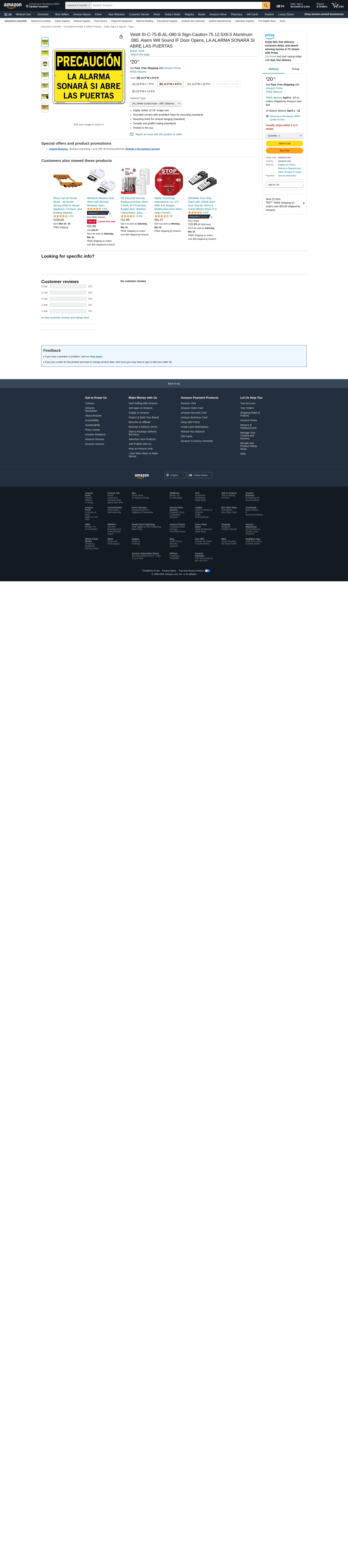 Vestil SI-C-75-B-AL-080-S Sign-Caution-75 12.5X9.5 Aluminum .080, Alarm Will Sound IF Door Opens, LA ALARMA SONARÁ SI ABRE LAS PUERTAS