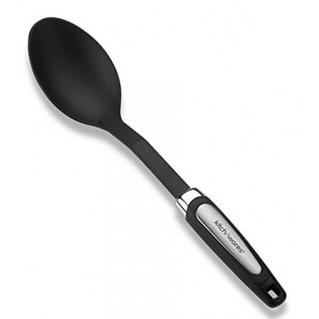 <b>Nylon Serving Spoon Classic Nonstick Nylon Basting Serving Spoon Utensil, Black - By Kitch N' Wares</b> <p>You will love this cooking spoon. Sturdy and well made, the classic serving spoon is durable and made to last.</p> <p> The silicone flexi-edge hugs pots and pans tightly, while protecting your cookware from scratches. </p> <p>It features a Comfortable to use long handle which is great for reaching into deep pots.</p> <p> The serving spoon is safe for all cookware and is perfect for basting your favorite:</p> <p> Meat</p> <p> Serving rice</p> <p> Or vegetables</p> <p>And so much more </p> <p>The Nylon head is heat resistant to 400 degrees F. and easy to clean-either a quick hand -wash or put it in the dishwasher for easy clean. </p> <p>- Durable handle provides a secure, comfortable grip; Handle has a Patented Shape, Ergonomically Designed to fit perfectly for Right or Left Hand Users </p> <p>- A hole in the handle allows convenient hanging storage - The nylon coating also means that food won't stick to this spoon, making it easy to lift.</p> <p>Spend your money for the good ones, Kitch N' Wares will get you satisfied, get yours today.</p> <p> Try it, it's totally risk free! If for any reason you decided you don't like it, just send a simple email and get a full refund!</p> <p> Absolutely no questions asked, so you have nothing to lose,<b> click add to cart now</b></p>