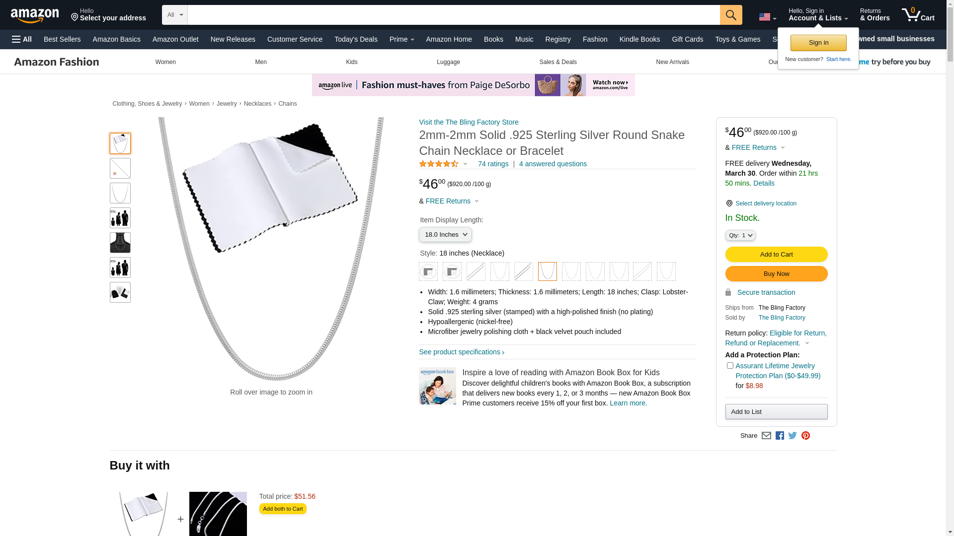 | Feature | A solid sterling silver 1.5 mm link necklace is crafted in Italy and features a snake chain design |