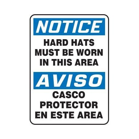 Accuform SBMPPA814VP Multilingual Radiation NOTICE HARD HATS MUST BE WORN IN THIS AREA (BILINGUAL) 14" x 10" Plstc