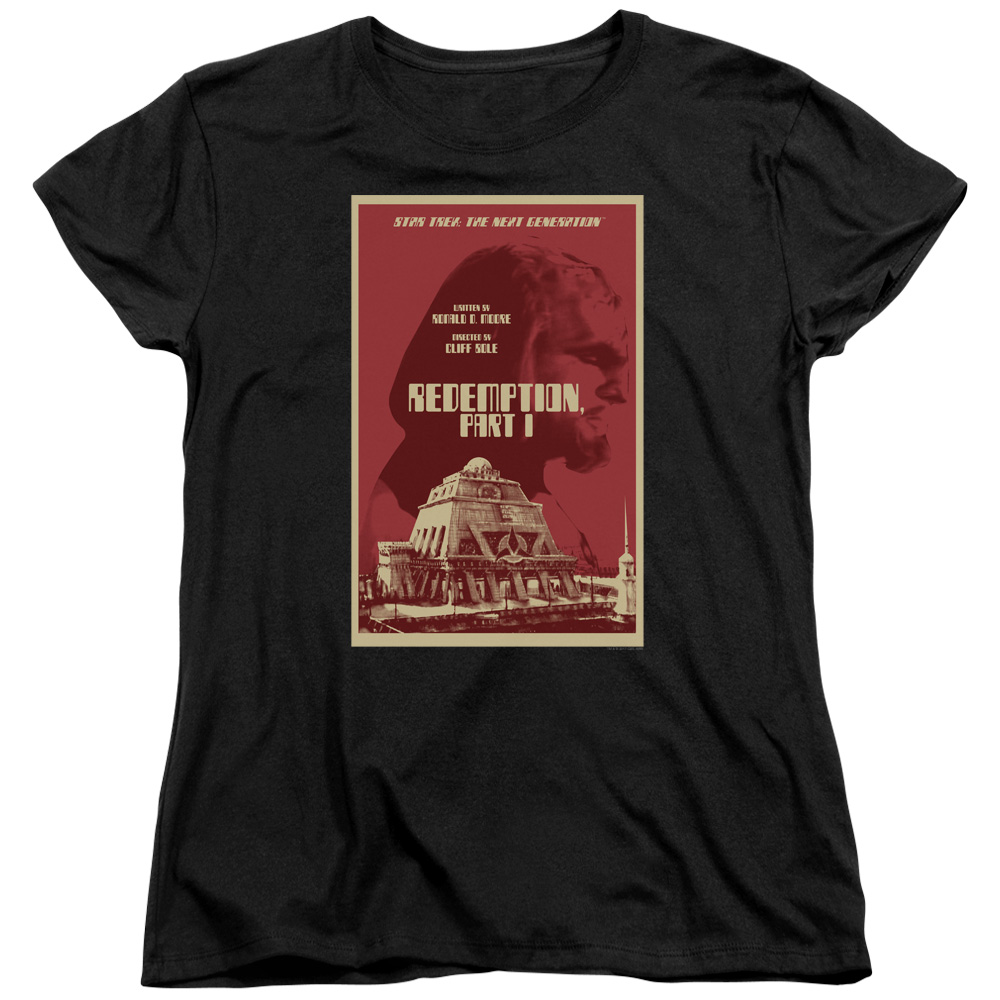 Trevco CBS2116B-WT-1 Star Trek & Tng Season 4 Episode 26 Short Sleeve Cotton Women T-Shirt, Black - Small