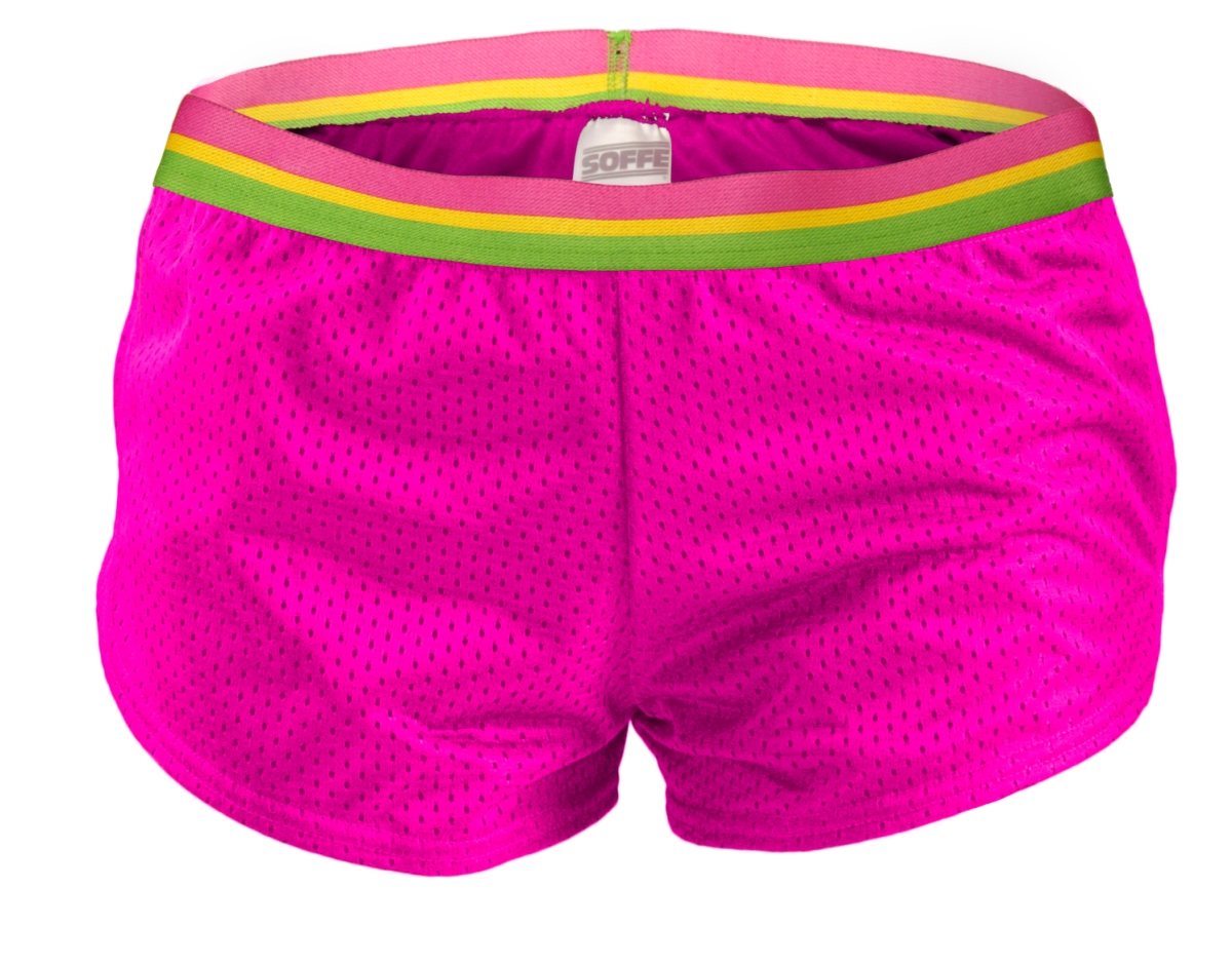 Soffe 461VE670XSM Mesh Stripe Elastic Shorts for Junior, Neon Pink - Extra Small