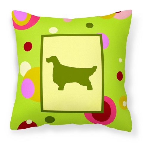 Carolines Treasures CK1028PW1414 Lime Green Dots English Setter Fabric Decorative Pillow, 14 x 3 x 14 in.