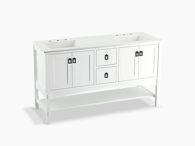 KOHLER K-99559-1WA MARABOU 60 INCH FOUR DOORS AND TWO DRAWERS BATHROOM VANITY CABINET, LINEN WHITE