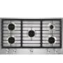 36 Inch Natural Gas Cooktop with 5 Sealed Burners, Continuous Grates, Installs Over Oven, ADA Compliant, UL Certification, Melt Function, Simmer Burner with Melt Cap, Flame-Sensing Re-ignition, Low-Profile Design, Dual-Stacked PowerBurner, Dishwasher Safe Grates, Cast Iron Grates, White LED Backlit Knobs, Brass Burners in Stainless Steel
