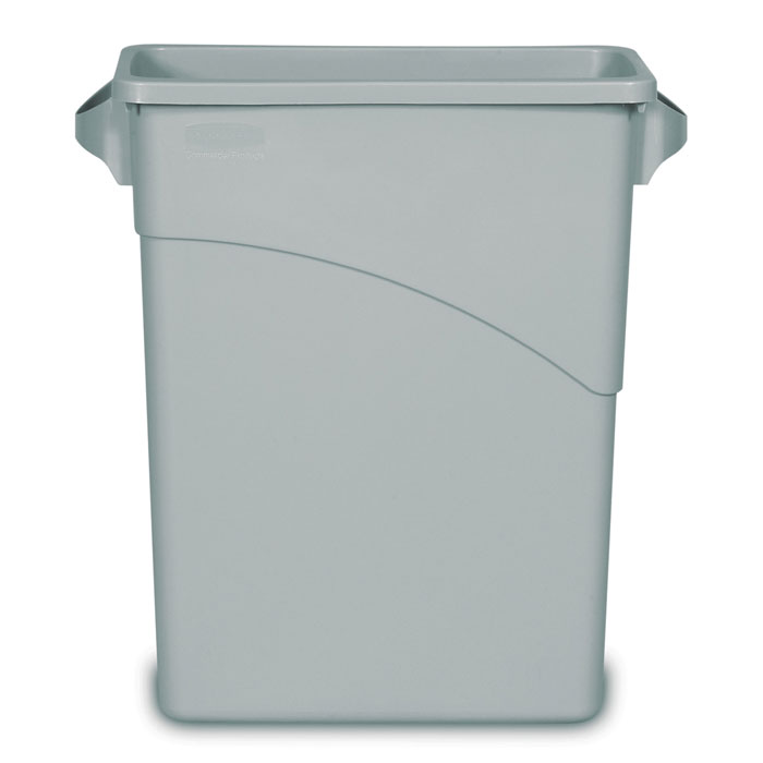 - Slim Jim Waste Container With Handles, Rectangular, Plastic, 15.9 Gal, Light Gray