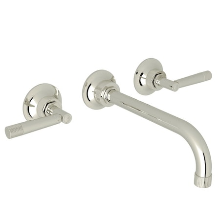 ROHL MICHAEL BERMAN GRACELINE TRIM SET ONLY WITH NO ROUGH VALVE BODY TO WALL MOUNTED THREE HOLE TUB FILLER WITH METAL LEVERS IN POLISHED NICKEL