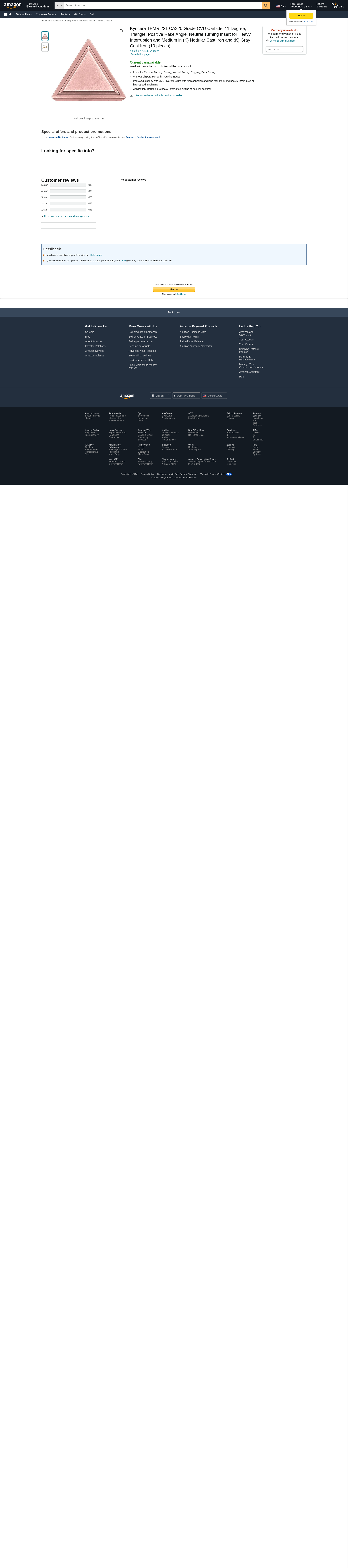Kyocera TPMR 221 CA320 Grade CVD Carbide, 11 Degree, Triangle, Positive Rake Angle, Neutral Turning Insert for Heavy Interruption and Medium in (K) Nodular Cast Iron and (K) Gray Cast Iron (10 pieces)