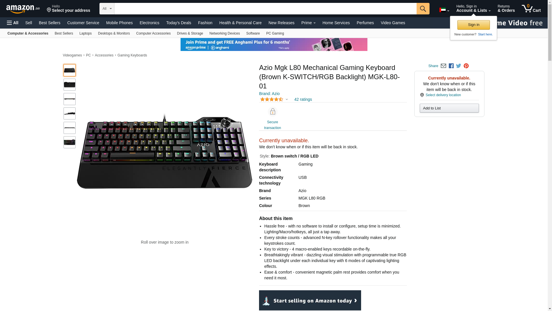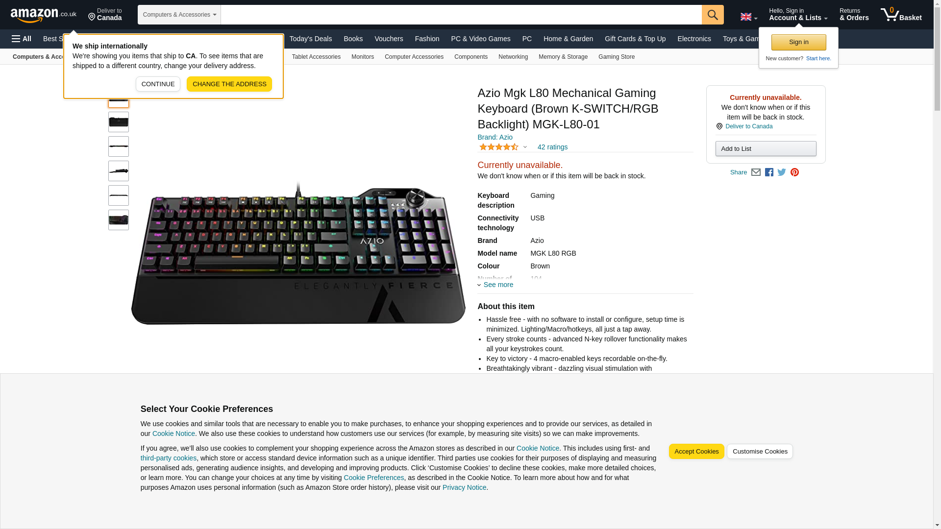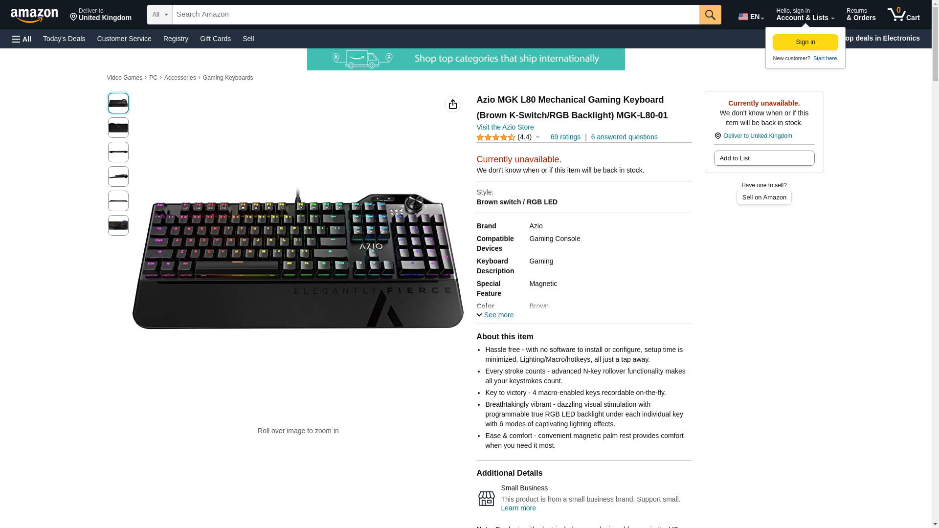 Azio MGK L80 Mechanical Gaming Keyboard (Brown K-Switch/RGB Backlight) MGK-L80-01