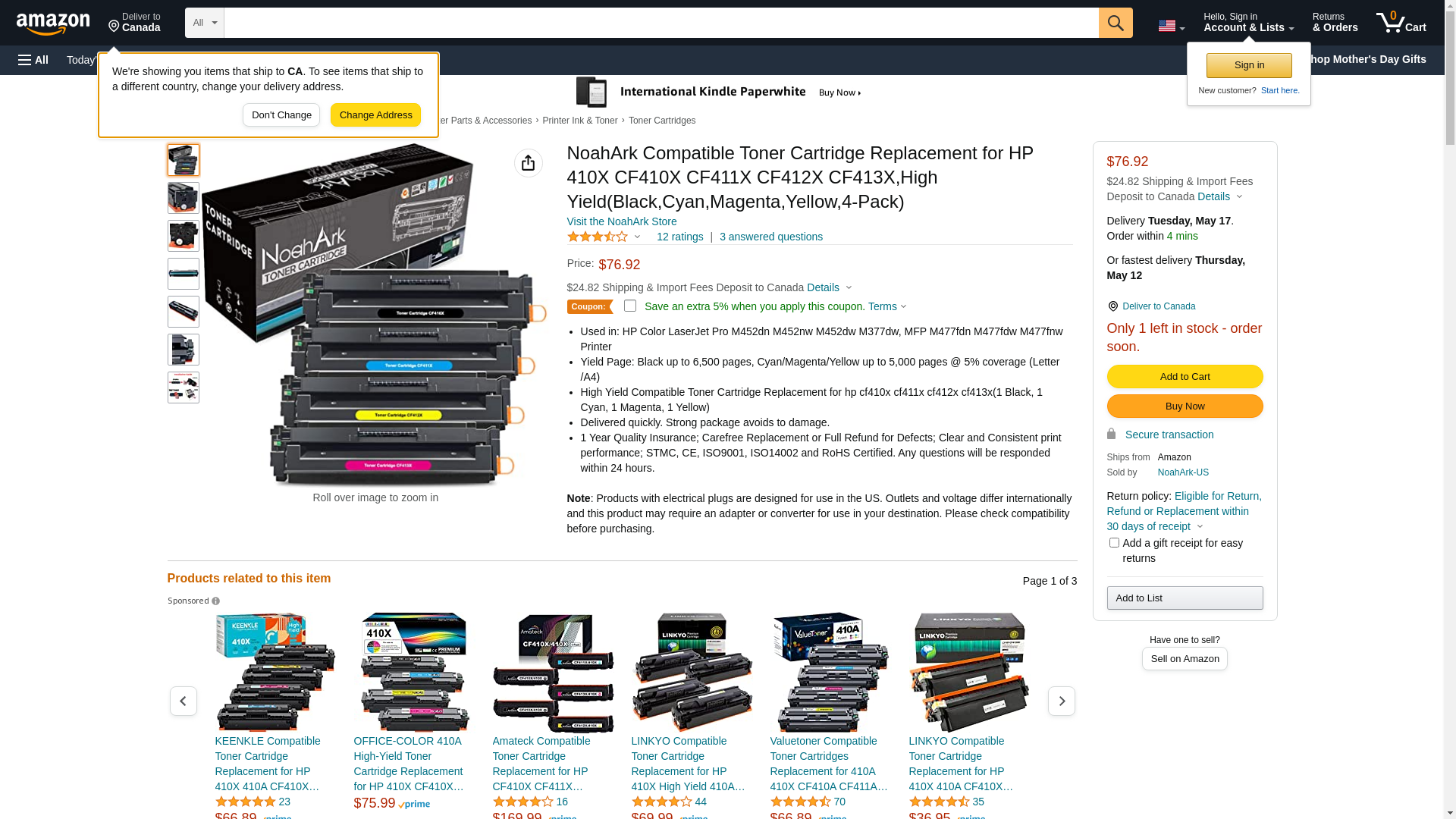 NoahArk Compatible <b>CF410X</b> Toner Cartridge<b>(NON-OEM)</b><br> <br><b>Compatible Models:</b> <br>Color LaserJet Pro M452dn Printer <br> Color LaserJet Pro M452dw Printer <br> Color LaserJet Pro M452nw Printer <br> Color LaserJet Pro M377dw Printer <br> Color LaserJet Pro MFP M477fnw Printer <br > Color LaserJet Pro MFP M477fdw Printer <br> Color LaserJet Pro MFP M477fdn Printer <br><b><br>Package Included:</b> <br>1 X CF410X Black, 1 X CF411X Cyan, 1 X CF412X Yellow, 1 X CF413X Magenta, Totally 4 Pack Toner Cartridges.<b><br><br>Why NoahArk:</b> <b><br>1. ENVIRONMENTAL FRIENDLY PRODUCT :</b> Using recyclable material and innovative technology to produce long-lasting and stable printing product.<b><br>2.100% QUALITY TEST :</b> A series of professional quality test to ensure compatible printers perfectly.<b><br>3.HIGH PRINTING PERFORMANCE :</b> Our CF410X toner cartridges help you reduce the printing cost while delivering bright colors and sharp text to satisfy your needs.<b><br>4. TWO YEARS MONEY BACK GUARANTEE :</b> 24 hours professional customer service is always waiting for you. Any issues within 3 years provide replacement or refund.<br><b><br>HOW TO CONTACT US :</b><br> Please log in your Amazon Buyer Account > Click Your Account > Your Orders > Find your order and click ‘Contact Seller’<br><b><br>TIPS:</b><b><br>1.</b> Please keep the product in the package and put it in the shade to avoid direct sunlight before use.<b><br>2.</b> If printer appears "Low/Empty Ink/Expiration" or other error messages, please click "Yes/OK/Next" to continue. <b><br>3. </b> Please confirm your printer model before order.<br><br><b>Your 100% satisfaction is our aim. We are always here for you. </b>