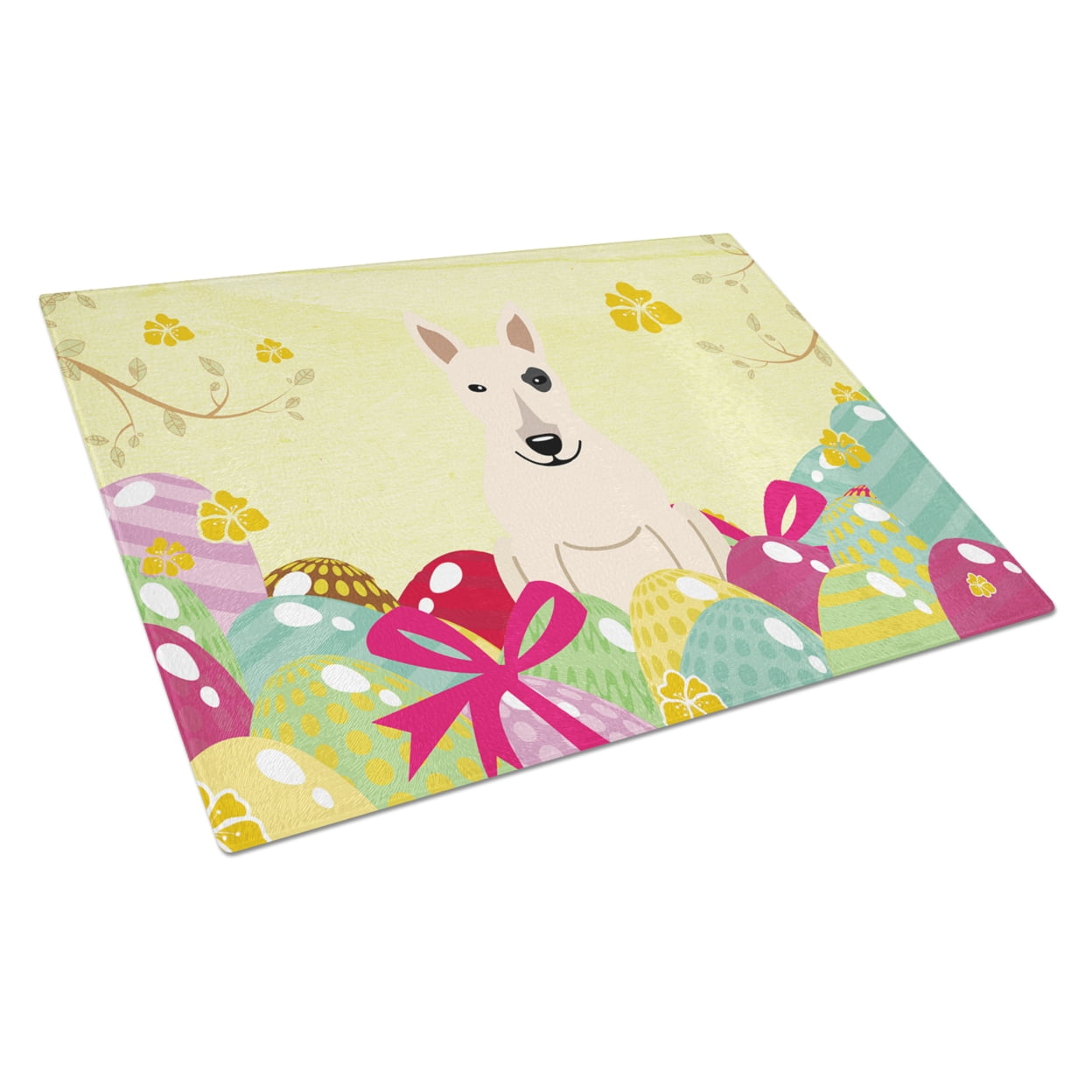 Easter Eggs Bull Terrier White Glass Cutting Board Large