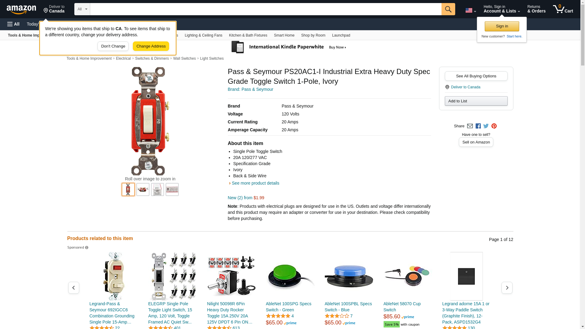 Pass & Seymour PS20AC1-I Industrial Extra Heavy Duty Spec Grade Toggle Switch 1-Pole, Ivory